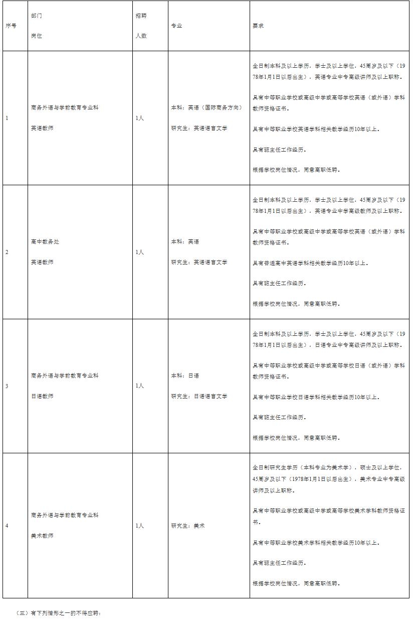 3.具有在中等职业学校或高级中学或高等学校教学工作经历。在国家和省、市规定的最低服务年限和试用期内不得参加选聘。