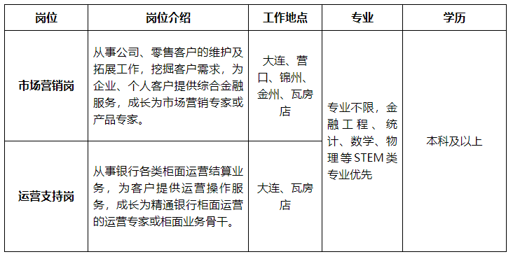 原标题:“梦想靠岸”招商银行大连分行2023春季校园招聘公告
