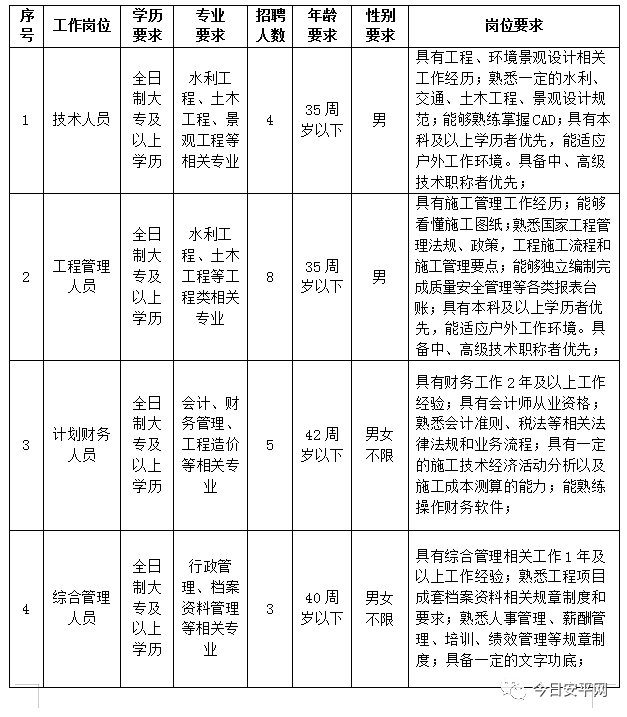 为进一步完善朝阳生态建设开发有限公司组织架构和技术力量,计划近期面向社会公开招聘人员20人,公告如下: