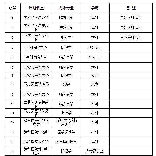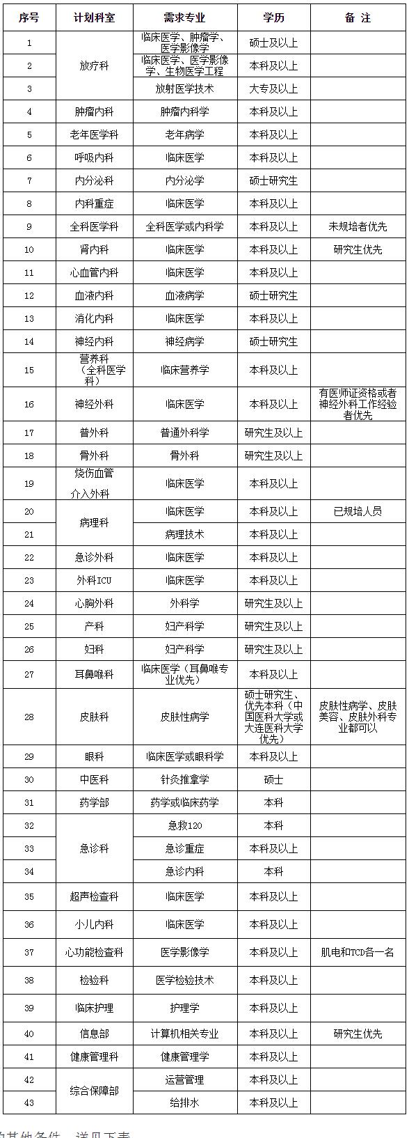 9、总医院本部岗位所需要的其他条件,详见下表: