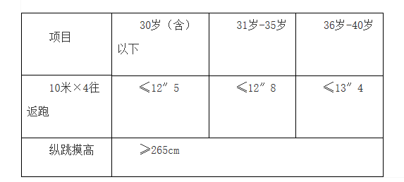 5.注意事项:参加体测人员须穿着运动服及运动鞋;患有心脑血管、高血压疾病及其他不宜参加体能测试情况人员不应参加体能测试。如参加测试,造成一切后果由考生本人负责。体能测试项目不进行复测,未达到面试比例时,可按照笔试成绩进行递补。