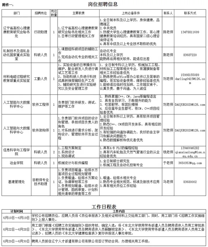 (一)相应岗位具体情况、招聘工作日程及联系人见附件一。