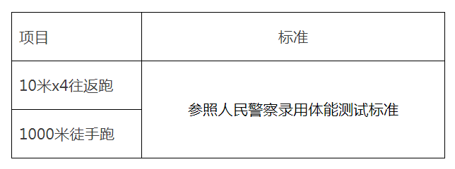 2、体检标准:体检标准参照人民警察录用体检标准执行。
