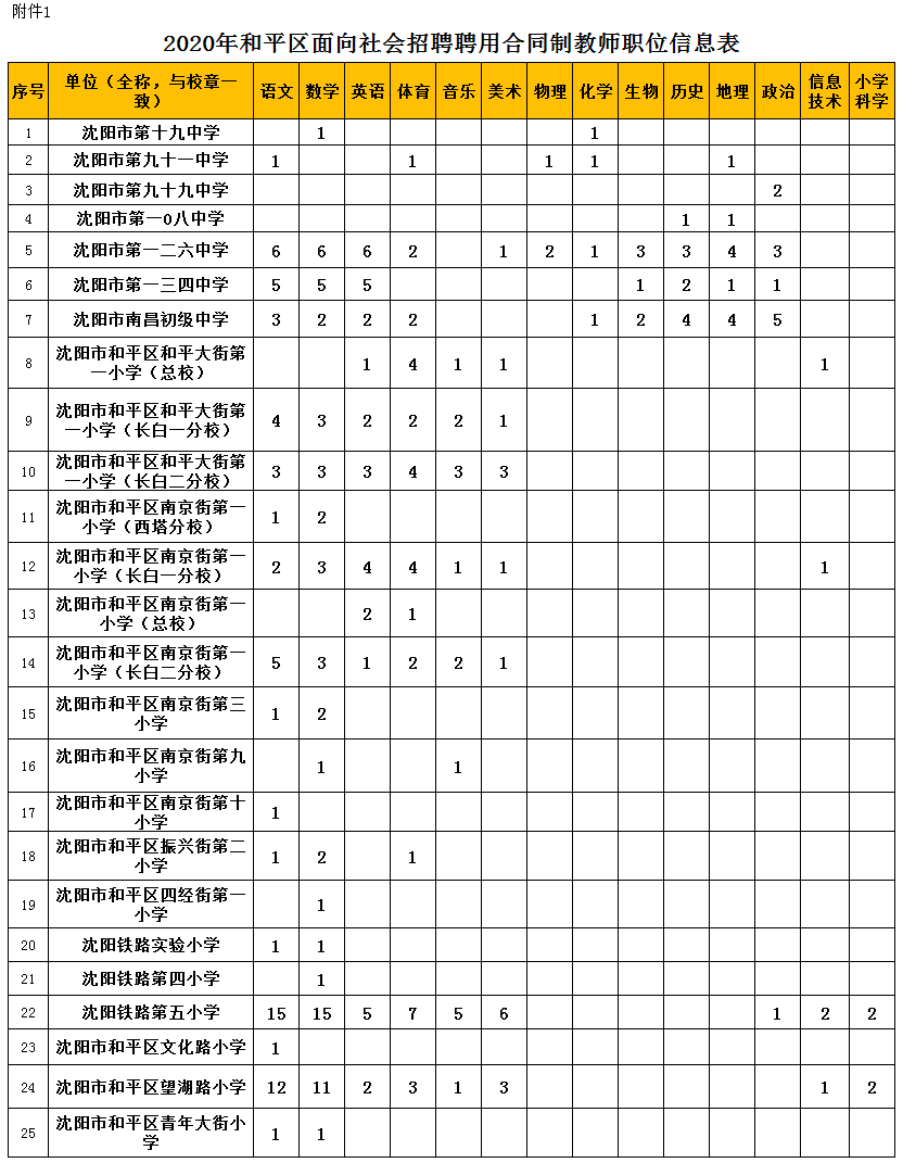 附件1:2020年和平区面向社会招聘聘用合同制教师职位信息表(见下图)