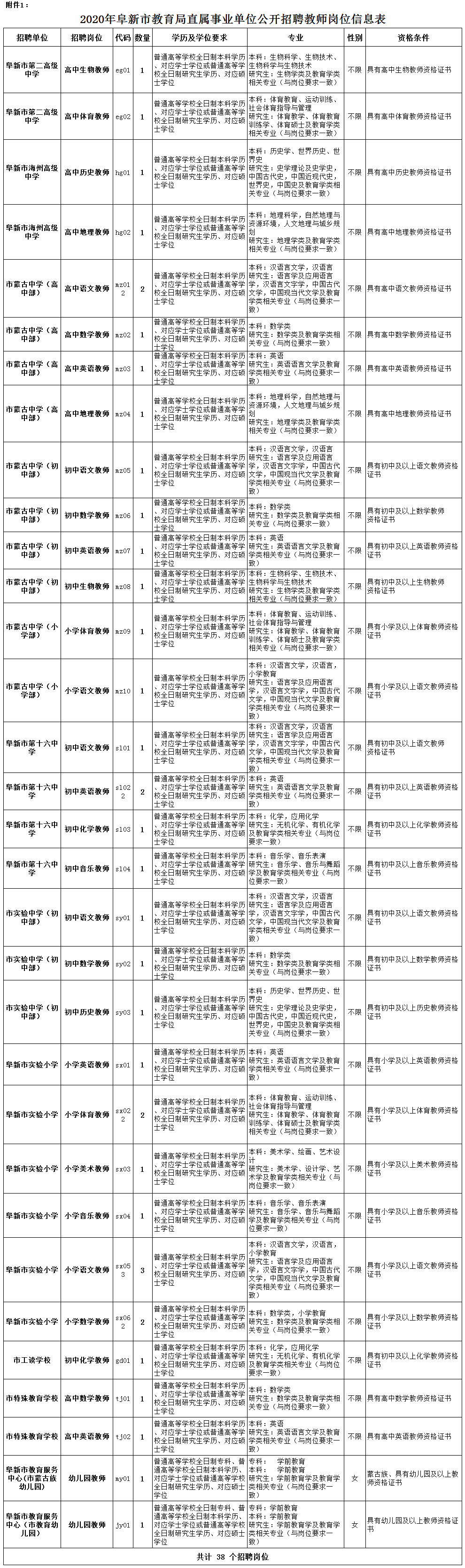 市教育局直属10家事业单位公开招聘教师38人,详见《2020年阜新市教育局直属事业单位公开招聘教师岗位信息表》(附件1)。(见文中最下方)