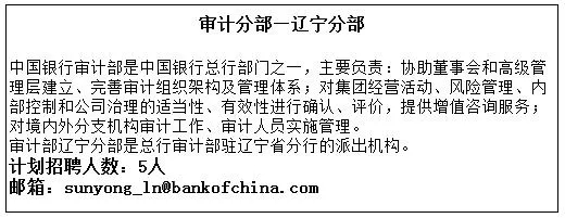 (三)审计分部(辽宁地区岗位信息见文中最下方)