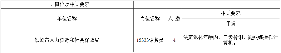 原标题:铁岭市人力资源和社会保障局公益性岗位招聘公告