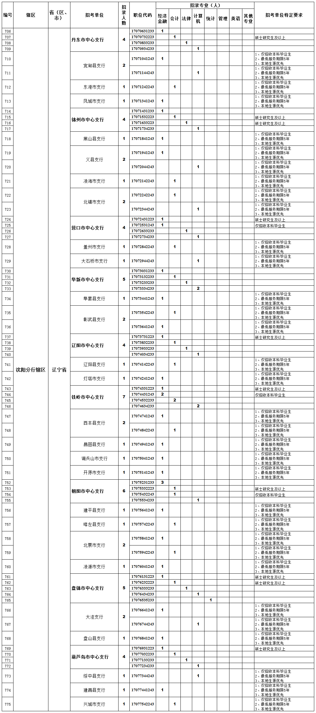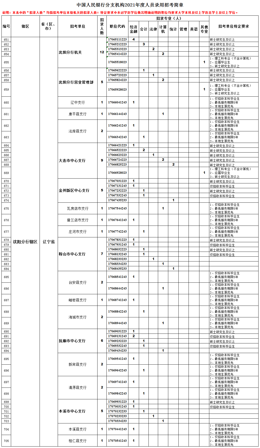 1.中国人民银行分支机构2021年度人员录用招考简章(辽宁地区招聘职位信息见下图)