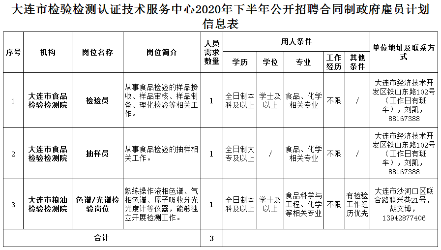 1.《大连市检验检测认证技术服务中心2020年下半年公开招聘合同制政府雇员计划信息表》 (见下图)
