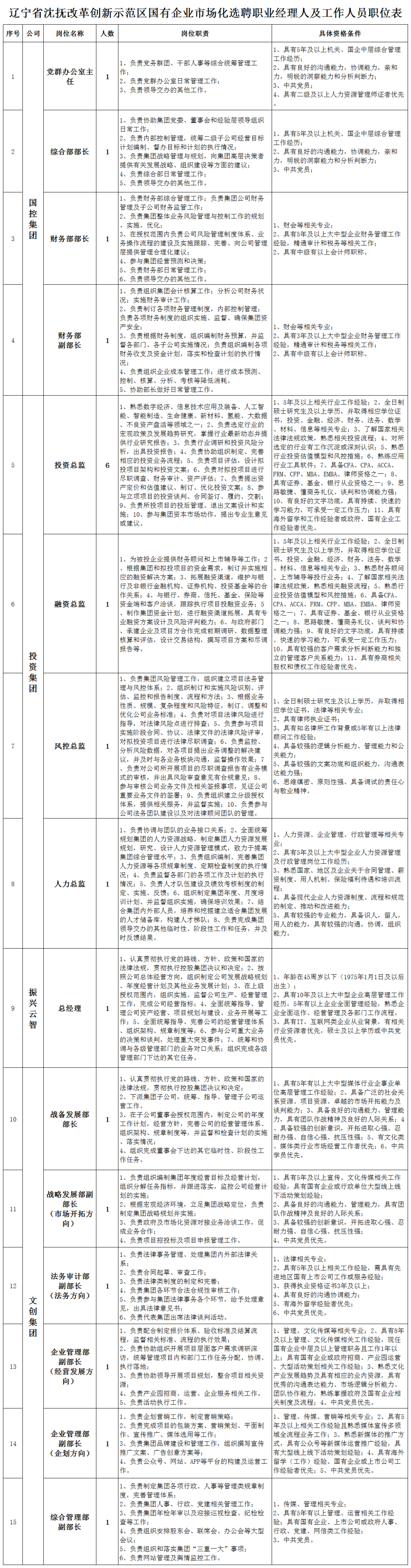 辽宁沈抚改革创新示范区国有企业市场化选聘34名职业经理公告