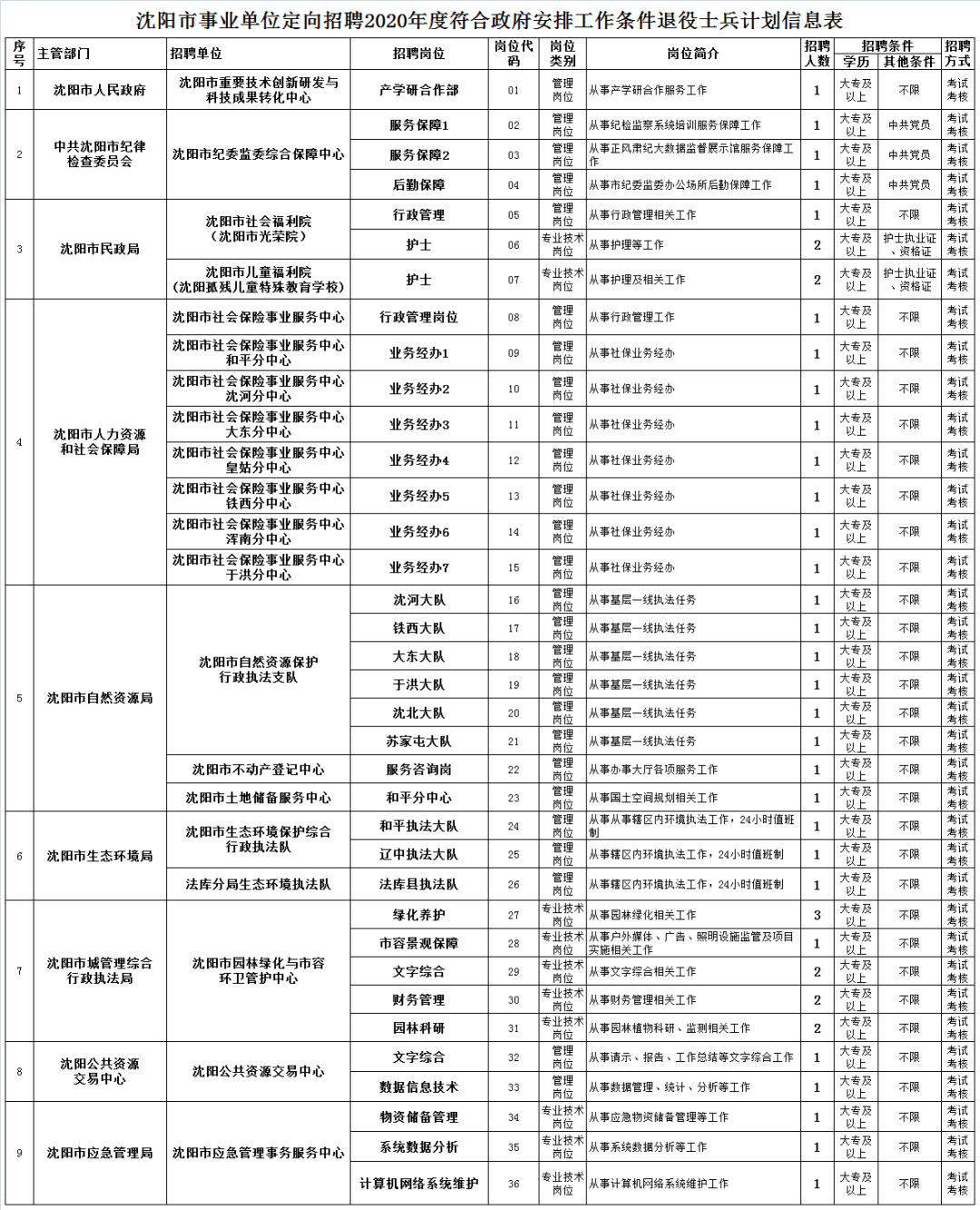 沈阳事业单位定向招聘2020符合政府安排工作条件退役士兵121人