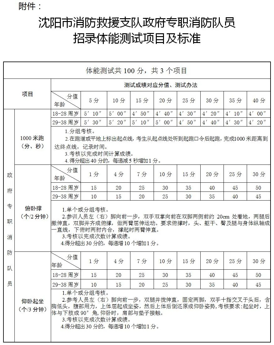 ①阳市消防救援支队政府专职消防队员招录体能测试项目及标准;(可见下图)
